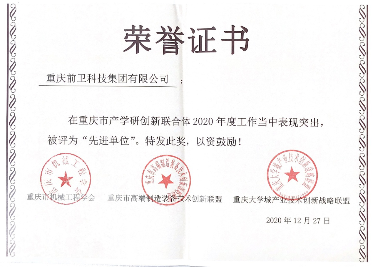 2020重慶市產(chǎn)學(xué)研創(chuàng)新聯(lián)合體2020年度“先進(jìn)單位”